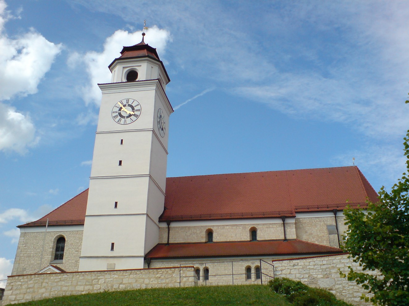 Kirche in Dollnstein - Altmühltal-RadwegDollnstein, 395 m ü.NHN, 2.700 Einw., wurde im Jahre 1007 erstmals urkundlich erwähnt; denn Heinrich II. (seit 995 Herzog von Bayern, ab 1002 König und 1014 zum Kaiser des Heiligen Römischen Reiches gekrönt) schenkte ein Gut namens Tollunstein den Benediktinerinnen. D.h. nun nicht, dass nicht schon früher im Bereich von Dollnstein Menschen siedelten, ganz im Gegenteil, z.B. verlief unweit flussabwärts eine Römerstraße und lagen nahebei römische Gutshöfe.