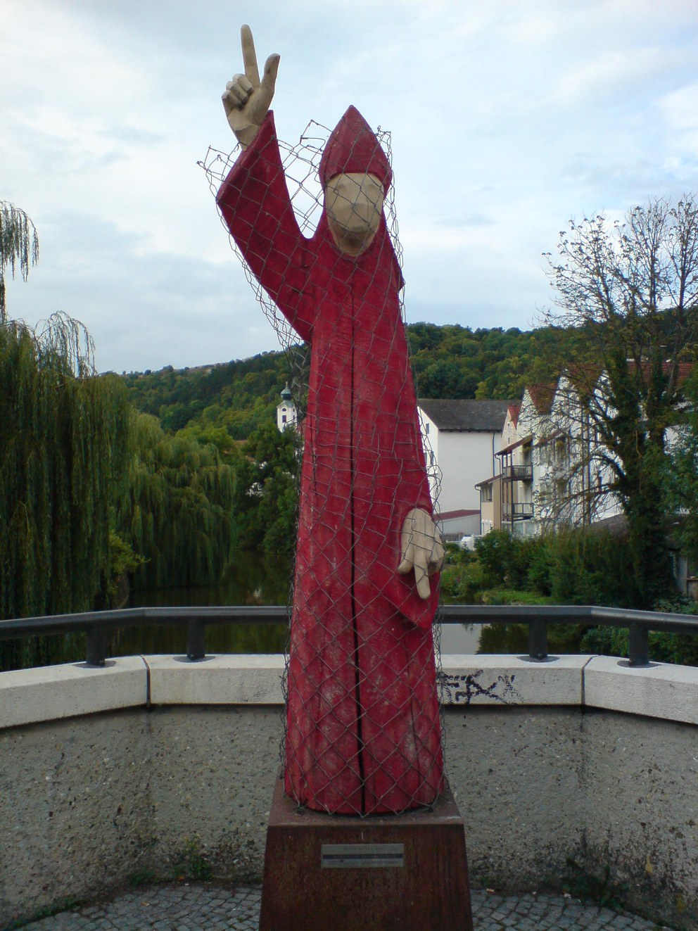 'Bischof' in Eichstätt - Altmühltal-RadwegAber das ist für Eichstätt wohl gar nicht so ungewöhnlich; denn immerhin wurde die schon in römischer Zeit besiedelte Ortschaft Mitte des 8. Jh. Bischofssitz. Um das zugehörige Kloster bildete sich ab dem 11. Jh. die Stadt, die ab 1305 der bischöflichen Herrschaft unterstand. Dies geriet der Stadt nicht zum Nachteil, denn das Kloster entwickelte sich im 15. Jh. zu einem Zentrum des Humanismus, und die kirchliche Macht sorgte für beachtlichen Wohlstand.