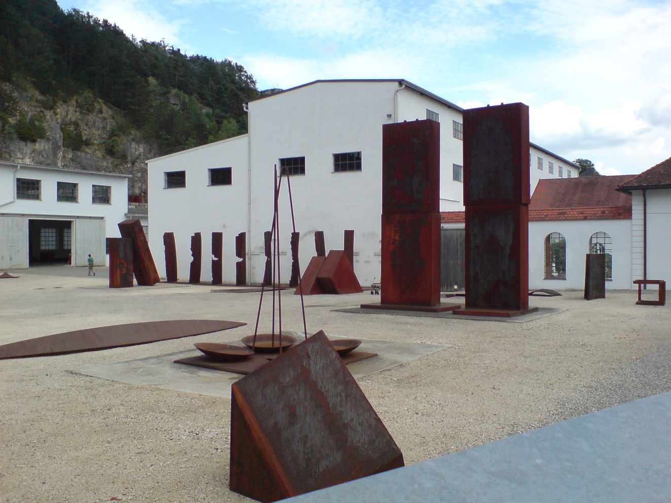 Alf-Lechner-Skulpturenpark in Obereichstätt - Altmühltal-RadwegIn Obereichstätt radeln Sie zunächst etwas hügelan, bevor es im Ort kurz steil aufwärts geht und Sie sodann halbrechts abbiegen. Vorbei am nebenstehenden Lechner-Skulpturenpark (www.lechner-museum.de) verlieren Sie bald wieder an Höhe, bevor die Route rechts zur Staats­straße St 2230 leitet. Kurz vor ihr wählen Sie rechter Hand den Geh- und Radweg, unterqueren nahe der Altmühl die Staatsstraße und radeln jenseits bis auf die Höhe von Wasserzell.