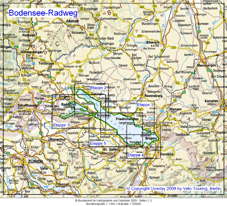 Übersichtskarte Bodensee-Radweg: