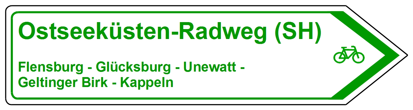 Flensburg - Glücksburg - Schausende - Bockholm - Siegum - Langballigholz - Westerholz - (Unewatt) - Dollerupholz - Neukirchen Nieby - Habernis - Norgaardholz - Steinbergholz - Steinberghaff - Gelting - Wackerballig - (Geltinger Birk) - Nieby - Pommerby - Kronsgaard - Hasselberg - Schwackendorf Stutebüll Kappeln (75 km)