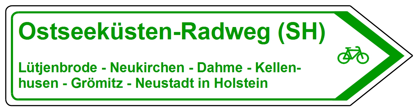 Am östlichen Ortsrand von Lütjenbrode folgen Sie dem Hinweis zum 'Rad- und Wanderweg Großenbrode' und halten sich an der Gabelung nach nur gut 100 m rechts, um auf einem ehemaligen Bahndamm, der teils mit feinem, teils grobem Schotter befestigt ist, bis zu einer kleinen asphaltierten Nebenstraße zu radeln, die links zum Gut Seekamp führt. Mit Kinderanhänger ist die ehemalige Bahnstrecke zum Teil eher schlecht befahrbar, weshalb man besser die rund 700 m weiter westlich parallel verlaufende Nebenstraße wählt.